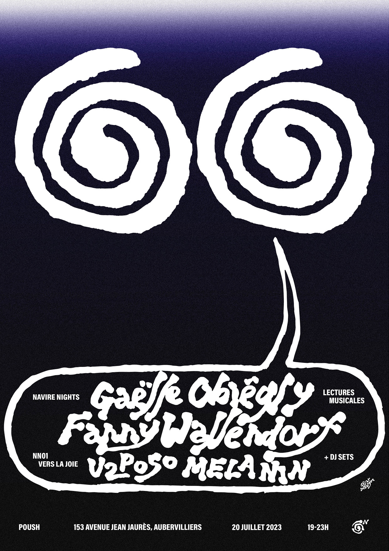 Visual identity for Navire Nights, cultural events of moving texts.